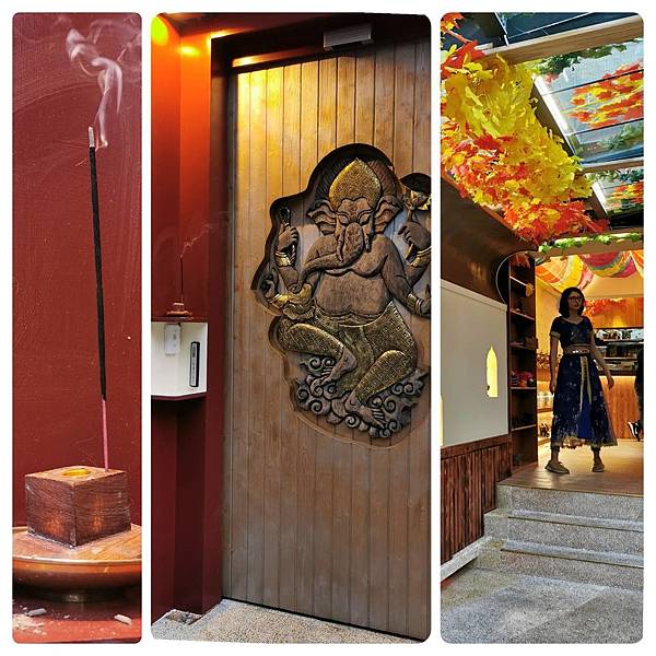 印渡風情這家店真的很認真在每一個細節耶!!門口還有線香再那邊~~門上的浮雕也太細緻了吧!連服務生都穿跳肚皮舞的那種衣服!踏進店裡整個就像直接飛到了印度!
