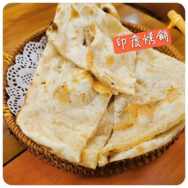 印度烤餅-外皮烤的焦香酥脆,餅皮有一點厚度,中間口感柔嫩,咬起來有嚼勁跟麵香,我鵝子超愛!直接吃了一整塊呢!