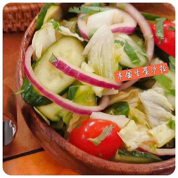 滿滿的一盆沙拉裡面有洋蔥.小黃瓜.小番茄.香菜.醬料很清甜吃起來很清爽順口!如果覺得咖哩有點辣!搭上這些生菜一起吃就會解辣一點唷!