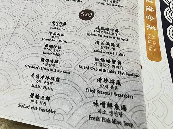 因為實在有點餓了!又選擇困難!我爸他朋友推薦了很多菜色!不麻煩了!我們點了5000的超值組合合菜!