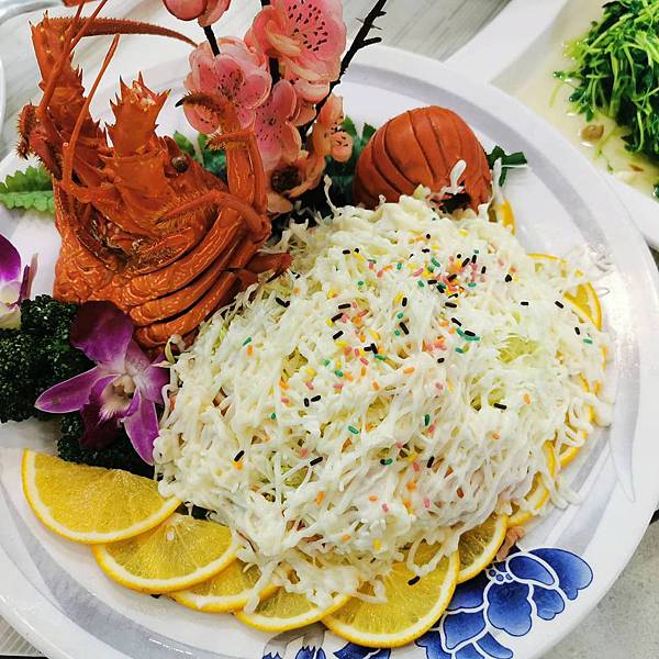先是龍蝦沙拉~肉質很Q彈緊實!切的厚度大小都很剛好!沾沙拉醬吃起來好吃的不得了!喜宴上常常需要搶的一道料理!這邊點起來吃個夠!