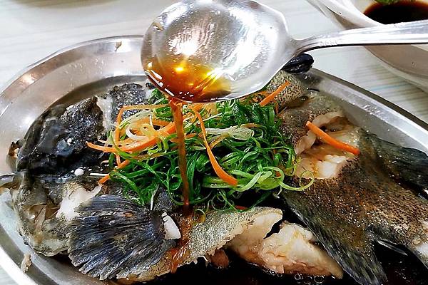 這道清蒸深海魚,魚肉是屬於扎實Q彈的口感!淋上醬汁配蔥絲!魚肉非常入味!沒有半點魚腥味!肉厚實又多!肉厚實又多!整個蠻大一條的耶!