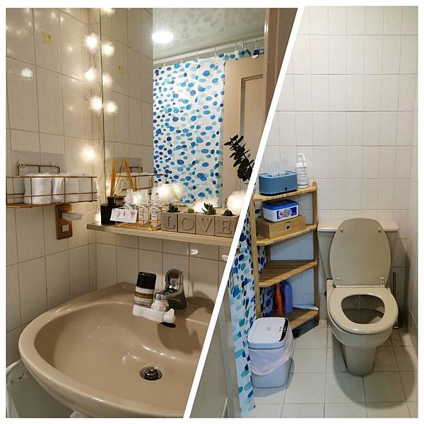 浴室也非常潔淨!備有一些擦手毛巾.濕紙巾垃圾桶是感應的,鏡子邊的小盆栽跟薰香擺設,總之來這裡就是感覺到自己香香美美的像個公主!