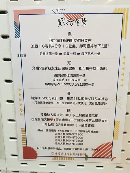 現在還有很多優惠活動喔!只要分享於IG來貳拾有柒的美容 美睫的美好感受就有很讚的3選1課程或禮物唷!介紹親朋好友也有好康活動可以參加!消費還可以集點!好康多多~