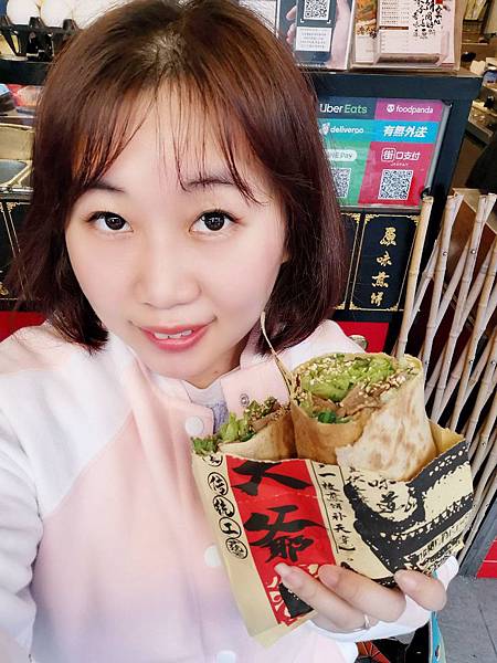 我今天買了兩種口味一個是北平烤鴨口味的一個是五香鹹豬肉口味!想說一份給我老公!兩個人吃一個怎麼夠!事實證明我多慮了!這兩個人吃真的很夠!但如果想吃不同口味買兩個也ok!因為這煎餅果子熱的時候吃跟放涼了吃都很好吃!餅皮會有不同的風味!熱的時候吃餅皮微脆,冷的時候吃餅皮多了一種韌性!嚼起來會吃到麵皮單純的穀物麵香!搭配裡面較重口味的醬跟肉根本天作之合啊!當然如果你還是喜歡吃剛出爐的港覺~可以用微波爐加熱或是用烤箱加熱,加熱秘訣哩!我有問過老闆了!烤箱的話60度烤3-5分鐘!這口感最接近剛出爐的口感,微波爐的話不要加熱超過30秒!也可以吃到熱騰騰的煎餅果子喔!