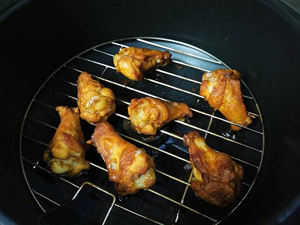 氣炸鍋把小雞腿皮炸得酥酥的!咖哩+咖啡的醬汁顏色也滲入雞皮烤起來顏色非常漂釀~~香味可以說是非常誘人吶!