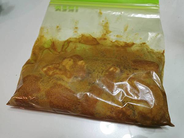 也可以用黑咖啡會讓咖哩味道更濃純!所以我想說我試試看用醃漬然後氣炸的方式做看看!果真很不賴!我很喜歡咖哩跟咖啡調出來的味道ㄟ!
