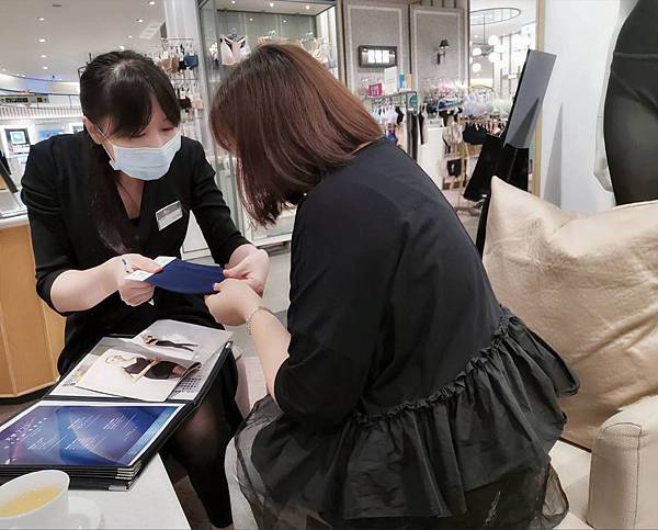 試穿過後專櫃人員會記錄下來你的量身尺寸以及需要改善的部分,也方便做後續的追蹤