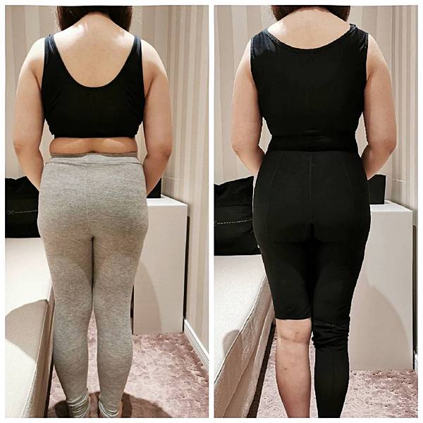 穿上塑身衣之後,背部、腰部跟臀部線條都變順了