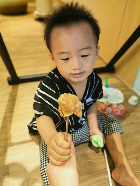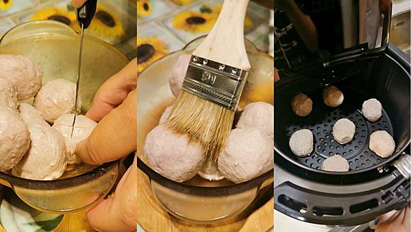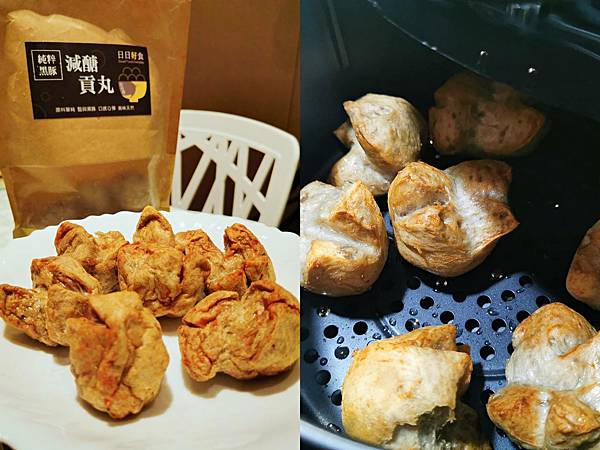 一丸多用還可以把貢丸做成美味的小點心下午茶也行!將退冰後的貢丸切成十字刷上一點油然後直接放入氣炸鍋裡氣炸個5分鐘左右