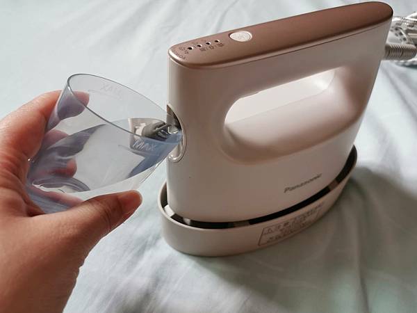 熨斗前方的塞子打開這使用水杯邊將水注入
